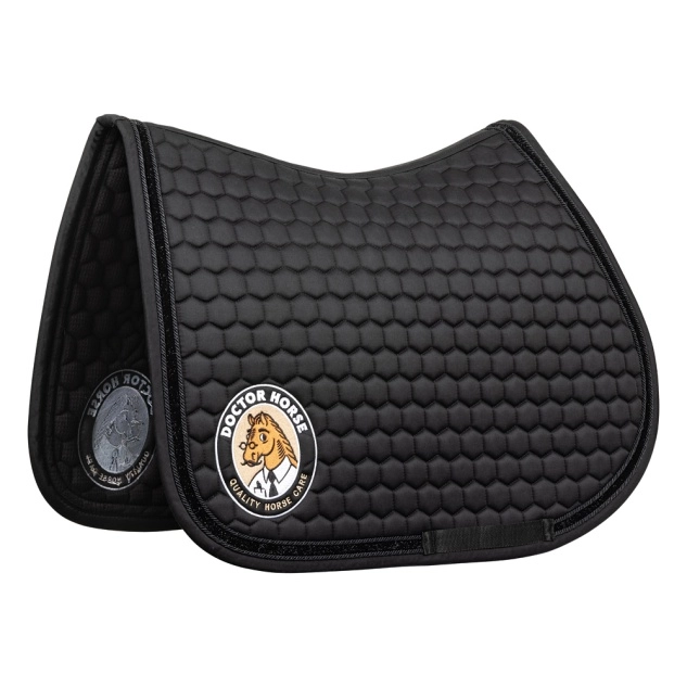 czaprak czarny skokowy, czaprak Kentucky czarny, czaprak z brokatem, czaprak z logo Doctor Horse, wegański czaprak dla konia, stylowy czaprak do skoków.